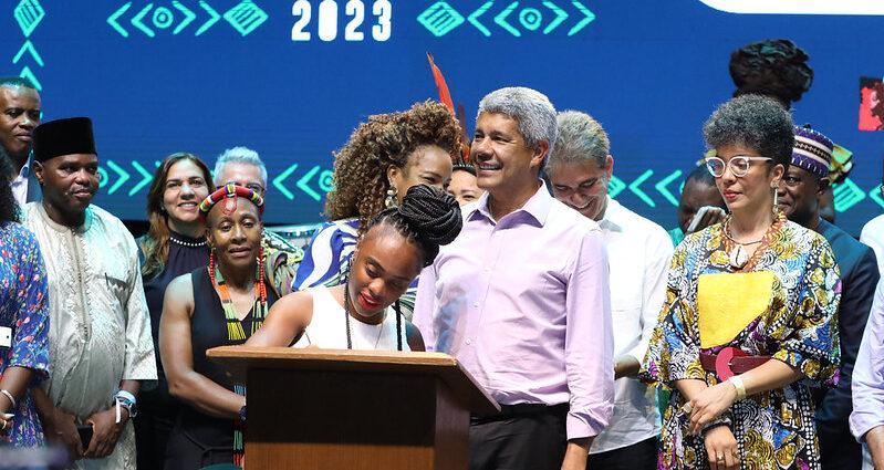 A assinatura sancionando a lei foi realizada durante o evento em celebração ao Novembro Negro, na Concha Acústica do Teatro Castro Alves, na noite desta terça-feira (21).