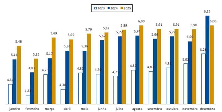 O Dia das Crianças, já celebrado em outubro, abriu o trimestre com um desempenho histórico: R$ 201,6 milhões em vendas, o maior volume desde 2008. No mês seguinte, a Black Friday deve manter novembro como um dos períodos mais fortes do varejo, com R$ 9,1 bilhões em movimentação, praticamente empatando com dezembro, que deve alcançar R$ 9,4 bilhões – alta de 1,8% ao ser comparado com 2024 –, tradicionalmente impulsionado pelo Natal e Ano Novo. A data natalina sozinha deve gerar R$ 1,57 bilhão, novo recorde na série histórica iniciada em 2012, além de um crescimento de 3,4% quando comparada a 2024.