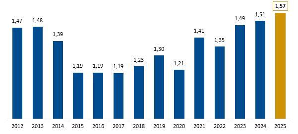 Já o setor de serviços deve movimentar R$ 69,6 bilhões em 2025, com crescimento de 5,8% frente a 2024. O avanço é liderado por Transportes, serviços auxiliares aos transportes e correio e Serviços prestados às famílias.