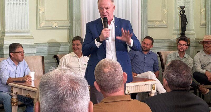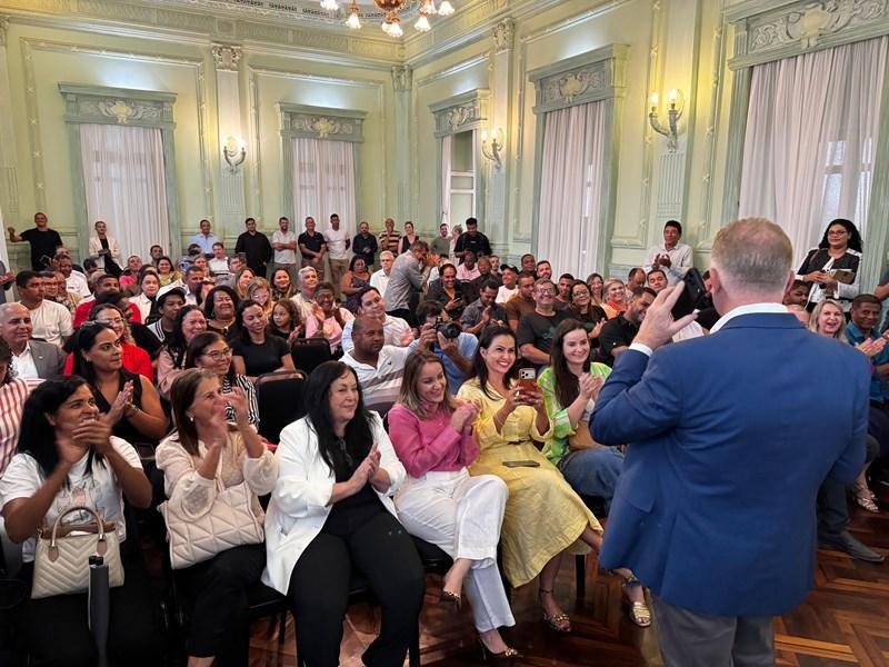 Ao lado de lideranças da região, durante a solenidade no Palácio Anchieta, o vice-governador destacou o impacto das obras para a logística e o desenvolvimento regional.