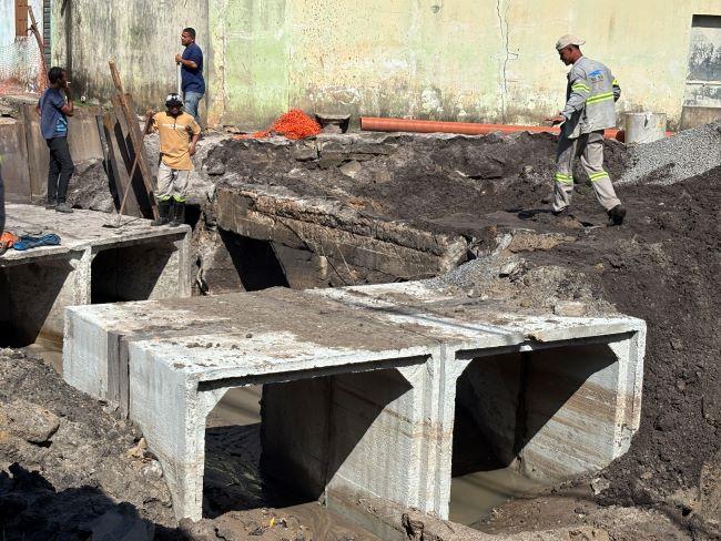 O projeto prevê a remoção total das antigas manilhas e a instalação de galerias de bueiros celulares duplos, com capacidade de vazão estimada em aproximadamente 15 mil litros por segundo.